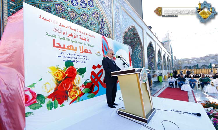 إحياءً لذكرى ولادة السيدة الصديقة الطاهرة, مكنون الكمالات، وخزين الفضائل والمكارم والحسنات، ورمز العفاف والشجاعة والبلاغة وقوة الجنان، ومثال الزهد والورع والعلم والشهامة, هذه الولادة العطرة التي ملأت سماء الإسلام بالفرح والسرور والغبطة، أقامت الأمانة العامة للعتبة الكاظمية المقدسة في رحاب الصحن الكاظمي الشريف حفلاً بهيجاً بهذه الذكرى الميمونة عصر الأربعاء 30 آذار 2016، بحضور الأمين العام للعتبة الكاظمية المقدسة أ .د. جمال عبد الرسول الدباغ وعدد من الشخصيات الدينية والاجتماعية وجمع غفير من زائري الإمامين الجوادين "عليهما السلام"، حيث استهل الحفل بتلاوة آيات مباركة من كتاب الله العزيز عطر بها قارئ العتبة السيد عمار الموسوي أسماع الحاضرين، تلتها كلمة الأمانة العامة للعتبة الكاظمية المقدسة ألقاها أمينها العام أ. د جمال الدباغ بين فيها قائلاً: ( عندما تطل علينا هذه الذكرى العزيزة على قلوب المؤمنين فإنها عادةً تبعث السرور في نفوسهم بهذه المناسبة الكريمة، ولكن الأهم من ذلك كله هو بعثُ السرور في قلب صاحبة الذكرى وذلك من خلال التمسك بنهجها وأخلاقها والتأسي بعفتها وحجابها والاقتداء بشجاعتها التي جعلتها من المدافعات عن الدين والعقيدة منذ شروق الرسالة الإسلامية وبعثة أبيها النبي الأعظم محمد "صلى الله عليه وآله" وحتى أواخر أيام حياتها.. وهذا يلقي على عاتق نسائنا مسؤولية جمة في رفع زخم المعركة ضد الدواعش وبث العزيمة في الأبن والأخ والأب والزوج التزاماً منها بفتوى الجهاد الكفائي التي أطلقتها المرجعية الدينية العليا المتمثلة بسماحة آية الله العظمى السيد علي الحسيني السيستاني "دام ظله الوارف" دفاعاً عن العراق والمقدسات). بعدها ارتقى المنصة فضيلة الشيخ منير الكاظمي ليتحفنا بمحاضرة دينية قيّمة استعرض فيها قبسات من شخصية السيدة الزهراء وسيرتها المباركة مبيناً أن ولادتها تكريماً للمرأة بشكل عام وللمرأة المسلمة بشكل خاص، حيث وجدت في كل مرحلة من مراحل عمرها الشريف انموذجاً حياً حيث درجت في مدارج الكمال حتى وصلت إلى الرفعة والسمو وكنّاها رسول الله"صلى الله عليه وآله": بـ (أم أبيها)، إذ كسرت الطوق لتخطّ لنا منهجاً قويماً في سلوكها الفكري والحضاري عندما أرادات ان تنتصر لحقها .