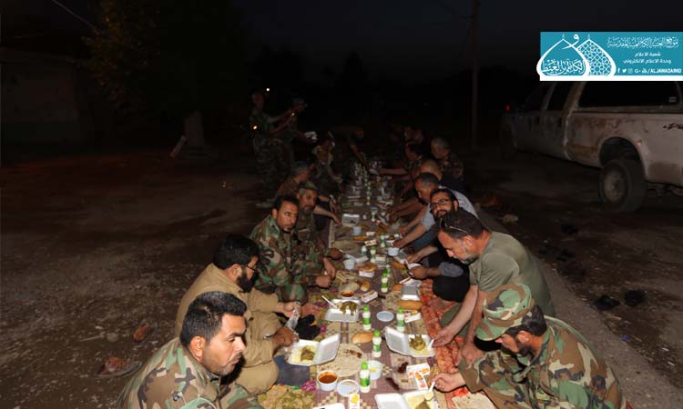 كما قامت الأمانة العامة للعتبة الكاظية المقدسة ضمن برامج الزيارات والتواصل ودعم الحشد الشعبي برنامج عبادي اشتمل على إقامة مأدبة رمضانية وقراءة آيات بينات من الذكر الحكيم وقراءة دعاء الافتتاح والتوجيهات الدينية لأجل إدامة زخم والانتصارات ورفع المعنويات وشحذ الهممهم. وفي ختام الزيارة نقل الوفد تحيات خدّام العتبة الكاظمية المقدسة داعين الله تبارك وتعالى أن يسدد خطاهم وينصرهم على الأعداء التكفيرين، وأن يكونوا دوماً اليد الضاربة والسد المنيع التي تحمي العراق والمقدسات.