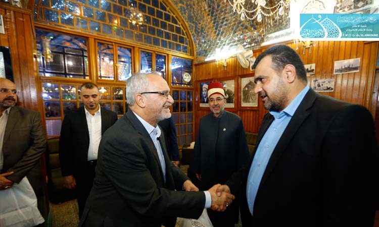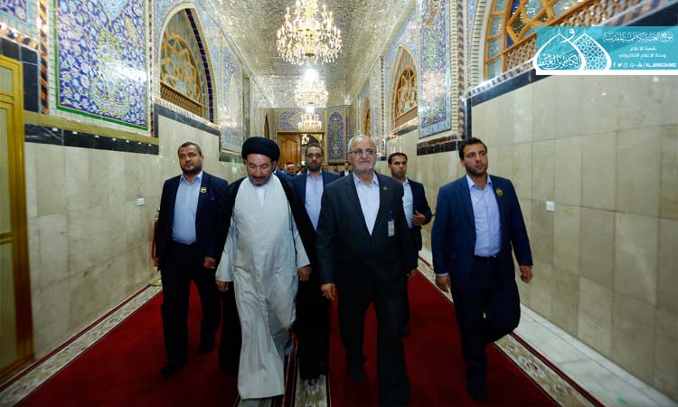 تشرف سماحة السيد نزار حبل المتين الأمين العام للعتبة العلوية المقدسة والوفد المرافق له بزيارة الإمامين الهمامين موسى بن جعفر ومحمد الجواد "عليه السلام"، وبعد أدائه مراسم الزيارة والدعاء, توجه سماحته الى مقر إدارة العتبة حيث استقبل من قبل الأمين العام للعتبة الكاظمية المقدسة أ.د. جمال عبد الرسول الدباغ والسادة أعضاء مجلس الإدارة بكل حفاوة وترحيب, وتقدم سماحة السيد حبل المتين بالتهاني وأزكى التبريكات إلى الأستاذ الدكتور جمال الدباغ بمناسبة تجديد مهام عمله وتكليفه أميناً عاماً للعتبة الكاظمية المقدسة.