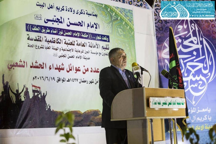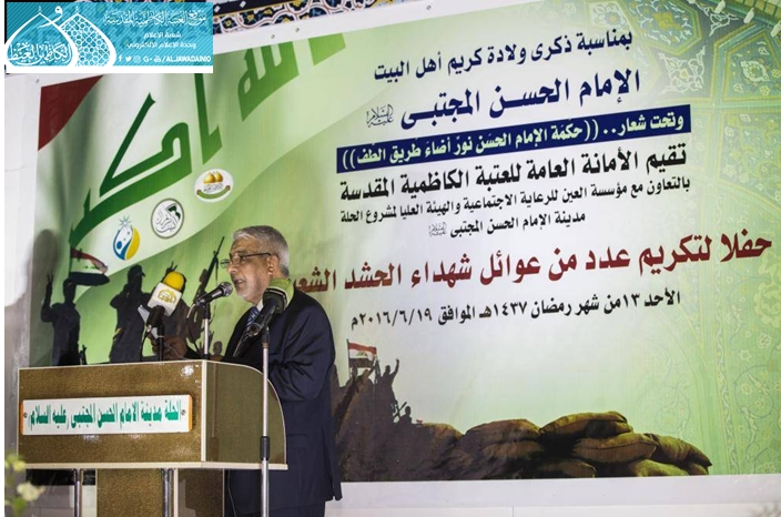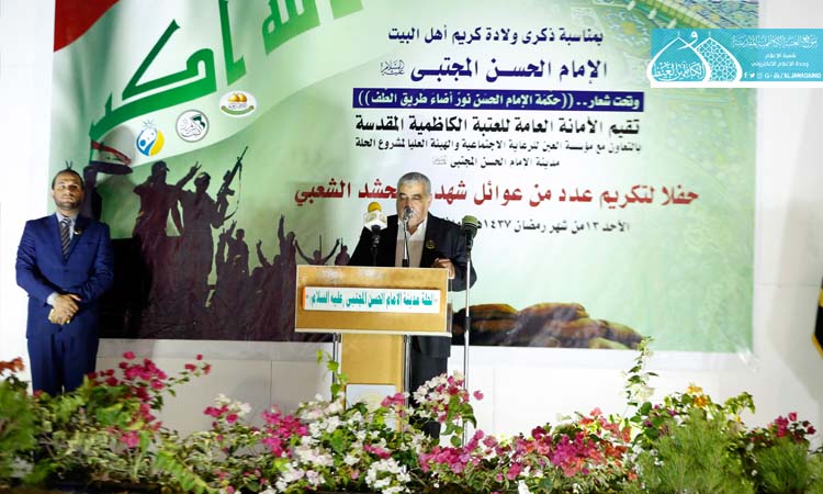 العتبة الكاظمية المقدسة تحتفل بولادة الإمام الحسن في بابل وتكرم عوائل شهداء الحشد الشعبي