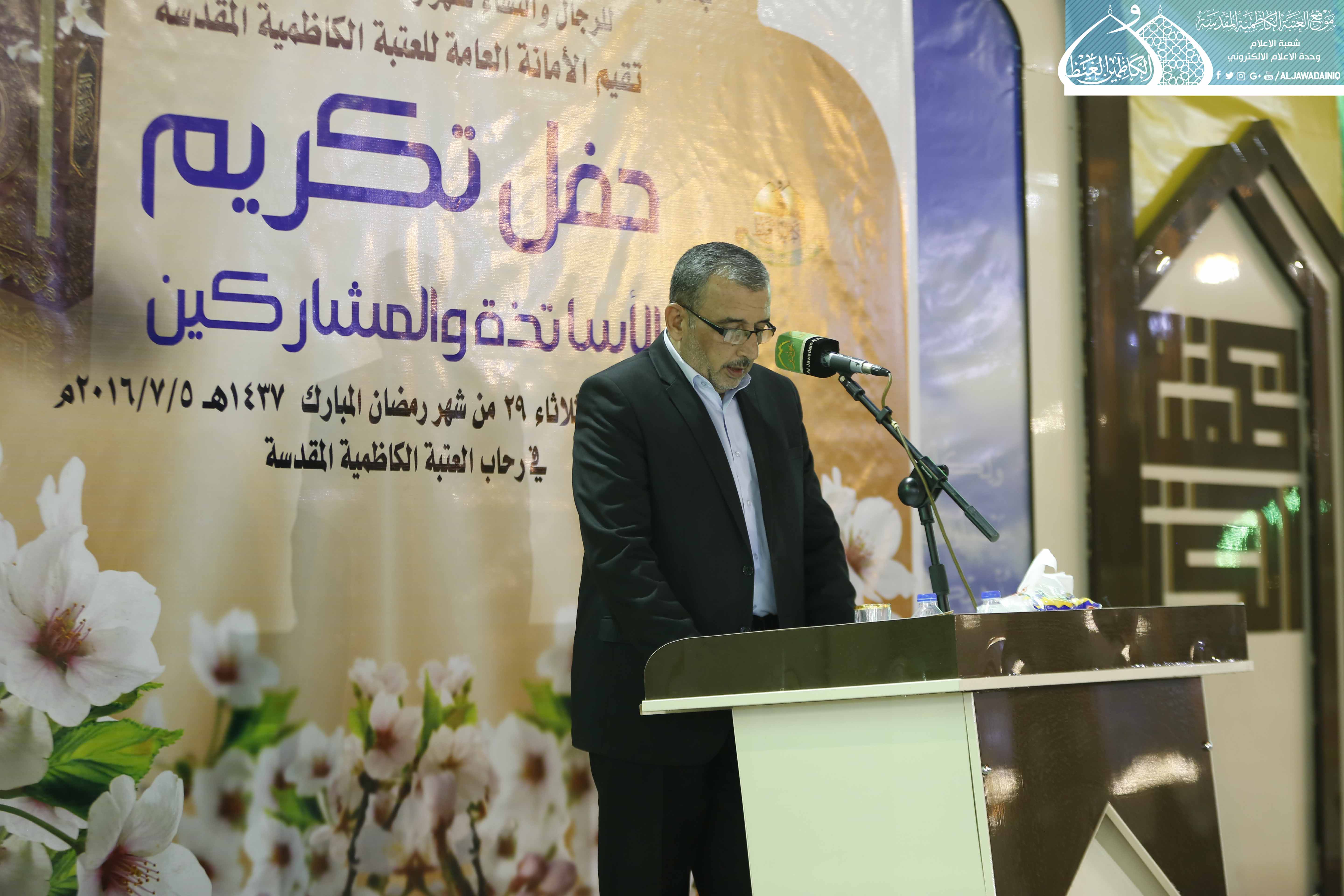 كما نستثمر هذه الفرصة وأدعو أولياء الأمور إلى تشجيع أولادهم في الدورات الصيفية ودورات حفظ القرآن التي تقيمها العتبة المقدسة، لما لهذه الدورات من امكانية اكتشاف المواهب في الأداء والقراءة والحفظ لاحتضانها بعد ذلك في دورات وفق أسلوب أكاديمي، ختاماً نهدي جهودنا وما تلوناه من كتاب الله العزيز خلال الشهر المبارك هدية واصلة ورحمة نازلة إلى أرواح شهداء قواتنا الأمنية وحشدنا الشعبي وكذلك الشهداء من المدنيين الذين قضوا جرّاء العمليات الإرهابية لا سيما في منطقة الكرادة، واختتمت تلك الفعاليات بتوزيع الهدايا على أساتذة الدورات القرآنية والمشاركين من فيض بركات الإمامين الكاظمين "عليهما السلام".