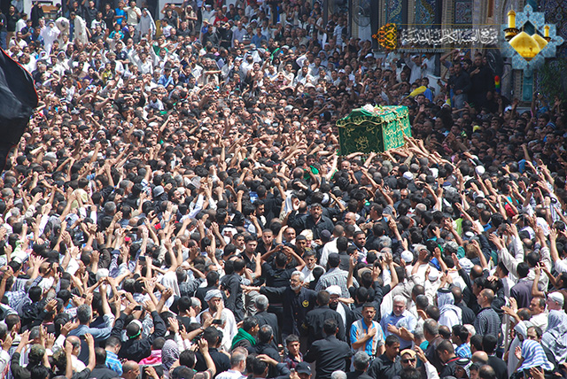 الحشود المليونية المؤمنة تشييع نعش راهب بني هاشم الإمام موسى الكاظم - عليه السلام