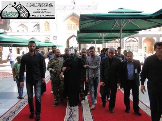 تشرف بزيارة الإمامين الجوادين "عليهما السلام" المجاهد (رحيم جاسم أبو محمد) في قوة الكاظمين القتالية الذي تعرض إلى إصابة فادحة جراء انفجار عبوة ناسفة داعشية غادرة في قاطع الفلوجة أثناء تأدية واجبه المقدس، مما فقد خلالها بصر أحدى عينيه والثانية التي سيحدد مصيرها بعد إجراء عملية جراحية لها، وكان برفقته ممثل المرجعية الدينية في مدينة الكاظمية المقدسة سماحة الشيخ حسين آل ياسين ، حيث استقبل من قبل عضو مجلس الإدارة المهندس سعد الحجية بكل حفاوة وترحيب، وتم خلال اللقاء تقليد المجاهد براية الإمامين الجوادين "عليهما السلام" تثميناً لتضحياته وتقديراً لجهوده البطولية في أداء مهامّه، وقد أعطى رسالة للإرهابيين مفادها بأن إرادة العراقيين لم ولن تقهر بوجود المرجعية الدينية العليا المتممثلة بسماحة آية الله العظمى السيد علي الحسيني السيستاني "أدام الله ظله الوارف" وعزمهم مستمر حتى تحرير آخر شبر من أرض العراق، إذ إنه لم يستسلم لمعاناته وآلامه الناجمة عن الإصابة الشديدة، طالباً من الأخوة المؤمنين الدعاء له بتعجيل الشفاء، مقرّراً تحدي الصعوبات والاستمرار بالعطاء.