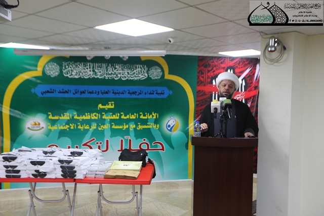 أقامت الأمانة العامة للعتبة الكاظمية المقدسة وبالتعاون مع مؤسسة العين للرعاية الاجتماعية/ فرع الكرادة حفل تكريم كوكبة من عوائل شهداء الحشد الشعبي في قاطع بغداد/ الكرخ، جاءت هذه المبادرة إكراماً للشهداء الملبين لنداء الجهاد المقدس للدفاع عن العراق ومقدساته الذين عقدوا العزم لبذل أرواحهم لإعلاء كلمة الحق ونيل عظيم شرف الدنيا وسعادة الآخرة.