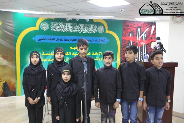 وتخلل الحفل مشاركة لفرقة إنشاد الجوادين بمجموعة من المراثي حيث صدحت أصواتهم بقراءة القصائد التي افتخرت بتضحيات الشهداء الأبطال الذين سقت دماؤهم أرض العراق.