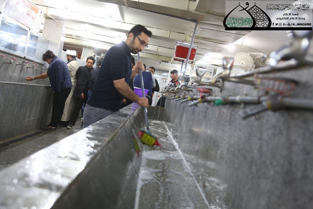 دون كَلَلٍ أو مللٍ تواصل ملاكات شعبة النظافة في العتبة الكاظمية المقدسة باستنفار جهودها وإنجاز أعمالها لأجل إدامة المكان الطاهر والحفاظ على نظافته وتوفير سبل الراحة للزائرين الكرام خلال موسم الأربعين، وبغية التعرّف على تلك النشاطات، تحدّث إلينا مسؤول شعبة النظافة السيد خضير عباس قائلاً: بدأنا بالخطة الخدمية والاستعدادات والتحضيرات منذ وقت مبكر حيث قامت فرق شعبة النظافة بتنظيف وإدامة دور الضيافة، وإقامة حملات تنظيف مجاري الصرف الصحي داخل الصحن الشريف وخارجه وتهيئة أكثر من (200) حاوية نفايات تم نشرها داخل العتبة المقدسة والشوارع المحيطة بها، كما رافقت تلك الأعمال جهود استثنائية خلال أيام الذروة للسيطرة على النظافة العامة داخل الحرم ومحيط الصحن الشريف وأماكن الضيافة وخيام إيواء الزائرين، والاهتمام بدورات المياه الصحية وتجهيزها بكميات كبيرة من المنظفات والمعقمات ورفع النفايات ونقلها إلى الأماكن المخصصة لها. فضلاً عن مجموعة من الأعمال تقوم بها ملاكاتنا بالتعاون والتنسيق مع الأقسام الأخرى لأجل إرجاع المواد والأجهزة والمفروشات وغيرها ونأمل من الباري العليّ القدير وببركة الإمامين الجوادين أن ننال شرف خدمة الزائرين الكرام.