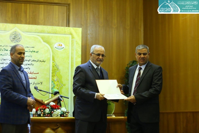 اختتمت فعاليات مسابقة النخبة السنوية التاسعة لحفظ القرآن الكريم وتلاوته الاربعاء 8/2/2017 في رحاب الصحن الكاظمي الشريف برعاية ديوان الوقف الشيعي/ المركز الوطني لعلوم القرآن وبالتعاون مع دائرة العتبات المقدسة والعتبة الكاظمية تحت شعار: ( قرّاؤنا .. حفّاظنا .. نبراس عراقنا)، بحضور الأمين العام للعتبة الكاظمية المقدسة أ.د. جمال عبد الرسول الدباغ وأعضاء مجلس الإدارة، ونخبة من المؤسسات القرآنية، وشهد حفل الأختتام الإعلان عن نتائج وأسماء الفائزين بالمسابقة من الحفاظ كان في المركز الأول مروان عواد جهاد من محافظة البصرة، أما في المركز الثاني مجيب محمد من محافظة ديالى، وفي المركز الثالث مصطفى تحسين علي من محافظة بغداد. أما الفائزين من القراء فكان بالمركز الأول فلاح زليف عطية من محافظة المثنى، والثاني ليث رحيم من محافظة الديوانية، ثم في المركز الثالث كان قاسم يعسوب من محافظة بابل. واختتمت فعاليات المسابقة بتوزيع الدروع والشهادات التقديرية على المشاركين الذين صدحت حناجرهم وجادت قرائحهم بتلاوات مباركة من الذكر الحكيم.