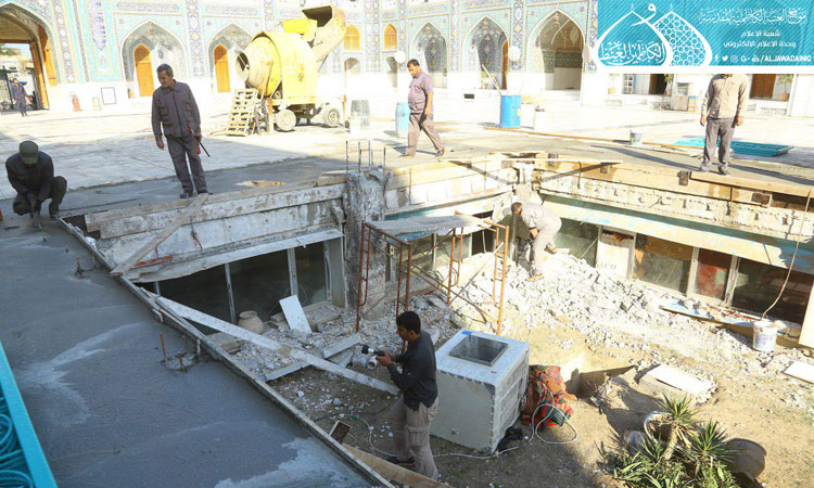 أعمال صيانة في صحن الإمام محمد الباقر "عليه السلام" استعداداً لزيارة الإمام موسى بن جعفر الكاظم "عليه السلام"