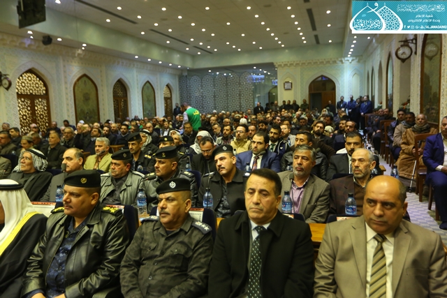 مدينة الكاظمية المقدسة والمناطق المجاورة لها .. عنوانٌ بارزٌ للتشرف بخدمة زائري الإمامين الكاظمين "عليهما السلام"، حيث كانت الحسينيات والجوامع والبيوت فيها محطّات مشرعة الأبواب لضيافة واستراحة الوافدين بمختلف ألوانهم وقومياتهم وجنسياتهم وطوائفهم، إذ جنّدوا أنفسهم وعوائلهم لتوفير أقصى درجات الراحة والخدمة وأثبتوا حُسن أداءهم من خلال تعاونهم مع العتبة الكاظمية المقدسة، وبالتزامن مع الذكرى المباركة لتتويج الحجّة بن الحسن المهدي "عجل الله فرجه الشريف" وتولّيه الإمامة من بعد أبيه "عليهما السلام"، كرّمت الأمانة العامّة للعتبة الكاظمية القيادات الأمنية ومتولّي الحسينيات والجوامع ونخبة من عوائل مدينة الكاظمية المقدسة والمناطق المجاورة لها في حفل أقيم لذلك مساء الجمعة 9 ربيع الأول 1438 هـ الموافق 9 كانون الأول 2016م في رحاب الصحن الكاظمي الشريف، وذلك تقديراً لجهودهم المباركة في موسم أربعينية الإمام الحسين "عليه السلام"، وتعاونهم مع العتبة الكاظمية المقدسة في استقبالهم وضيافتهم للحشود الموالية الوافدة من الدول الإسلامية، التي جاءت لنيل شرف زيارة الإمامين الجوادين "عليهما السلام" وتجديد العهد والولاء لهم، والمتخذة من المرقدين الطاهرين نقطة انطلاق نحو كربلاء المقدسة, بحضور ممثل المرجعية الدينية في مدينة الكاظمية المقدسة سماحة الشيخ حسين آل ياسين، والأمين العام للعتبة الكاظمية المقدسة أ.د. جمال عبد الرسول الدباغ وأعضاء مجلس الإدارة وعدد من الشخصيات الدينية والاجتماعية والقيادات الأمنية ونخبة من وجهاء وأهالي مدينة الكاظمية المقدسة. استهل الحفل بتلاوة مباركة من الذكر الحكيم, وقراءة سورة الفاتحة ترحماً إلى أرواح شهداء العراق، وقراءة أنشودة الفردوس، بعدها ألقى الأمين العام للعتبة الكاظمية المقدسة كلمة بهذه المناسبة قائلاً: نلتقي في رحاب الإمامين الكاظمين "عليهما السلام"، في مناسبة عزيزة تقتضي أن نحمد الله ونشكره على ما وفّق الجميع إليه فقد كانت أيام زيارة الأربعين في هذه المدينة المقدسة من الأيام المشهودة حيث توافد إليها حوالي (5) ملايين زائر على مدى عشرين يوماً من شهر صفر للتشرف بزيارة الإمامين الجوادين "عليهما السلام"، والحمد لله الذي وفق الجميع للقيام بأقصى درجات الخدمة للزائرين. كما أشاد السيد الأمين بمواقف القوات الأمنية والحشد الشعبي قائلاً: نتوجه بالشكر والتقدير لهم ولكل من يقف للدفاع عن هذا الوطن، حيث وقفوا وقفة تاريخية، ولولا تضحياتهم لما استطعنا أن نقوم بهذه الزيارات المباركة واستقبال هذه الحشود الإيمانية، ونسأل الله أن يتولاهم برعايته وينصرهم نصرا عزيزا.