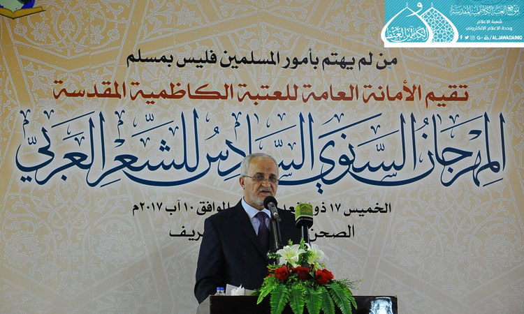 بدأت فعاليات المهرجان السنوي السادس في رحاب العتبة الكاظمية المقدسة وهي تبسط أذرعها منبراً ليرتقيه المبدعون الذين صاغوا كلمات النقاء شعراً جزلاً، وسط حضور محلي ودولي.