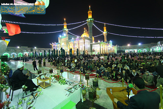 بمناسبة ذكرى ولادة البشير النذير والصادق الامين النبي محمد(ص) وولادة حفيد النبوة وسليل الإمامة سادس أئمة الهدى الإمام جعفر بن محمد الصادق(ع), اقامت الامانة العامة للعتبة الكاظمية المقدسة محفلاً قرآنياً بهذه الايام المباركة تحت شعار(محمد رسول الله(ص) عنوان للسلام والوحدة والتألف) وتستمر فعاليات هذا الحفل للفترة( 12 ــ 17)ربيع الأول 1434هـ في رحاب الصحن الكاظمي الشريف. تخللته تلاوات قرآنية معطرة تنسمت بها أجواء الصحن الكاظمي الشريف بحضور السيد(موسى الأعرجي) نائب الأمين العام للعتبة الكاظمية المقدسة, وسماحة الشيخ(مكي شطيط الطائي) عضو مجلس إدارة العتبة ورئيس قسم الثقافة والإعلام والحاج(أموري السلامي) رئيس قسم الشؤون الخدمية ووفود المؤسسات القرآنية في بغداد والمحافظات العراقية وشارك في المحفل المبارك نخبة من كبار القراء العراقيين الذين شنفوا باصواتهم المتميزة أسماع الحاضرين ومنهم القارئ(عمار العبيدي) الحاصل على المركز الأول في مسابقة المؤسسة القرآنية العراقية والقارئ(احمد جاسم الكوفي) من العتبة العلوية المقدسة والقارئ(سجاد احمد) من العتبة الكاظمية المقدسة كما تخلل المحفل بعض الموشحات الدينية لفرقة الجوادين الإنشادية, ومشاركة للمنشد (حسين الياخندي) ببعض الابتهالات والمناقب النبوية ومديح الرسول(ص) وعترته الطاهرة(ع), وتضمن المحفل فقرة الاسئلة القرآنية والإجابة الآنية عليها وتوزيع الهدايا على المشاركين , بحضور الجموع الغفيرة من زائري الامامين الجوادين(ع), التي توافدت على الصحن الكاظمي الشريف لتنهل من فيوضات الرحمة الإلهية لنيل الأجر والثواب .