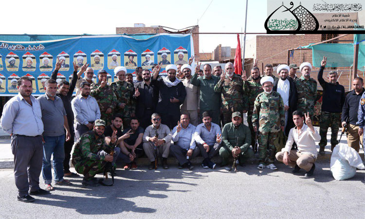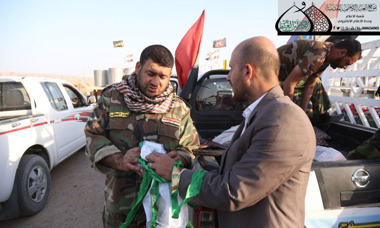 توجه وفد خدام العتبة الكاظمية المقدسة وبرفقته كوكبة من فضلاء الحوزة العلمية الشريفة في لجنة الإرشاد والتعبئة للدفاع عن العراق والمقدسات التابعة للعتبة العلوية المقدسة لزيارة القطعات العسكرية وقوات الحشد الشعبي من لواء الطّف المنتشرة في محور تلال حمرين. واطلع الوفد على التطورات الأمنية الحاصلة في تلك المناطق والجهود التي يبذلها مقاتلو الحشد الشعبي للحفاظ عليها من دنس الجماعات الإرهابية. في الوقت ذاته قدّم الوفد الدعم المادي والمعنوي وشحذ همم المؤمنين الأبطال المُلبيّن لنداء الفتوى المقدسة، الذين قدّموا وما يزالون يقدّمون التضحيات الكبيرة حين سطّروا أروع الملاحم إلى جانب صفوف القوات الأمنية في الدفاع عن أرض العراق ومقدساته، كما أكد الوفد على المقاتلين الإلتزام بالوصايا السديدة للمرجعية الدينية العليا المتمثلة بسماحة آية الله العظمى السيد علي الحسيني السيستاني "دام ظله الوارف" والحذر من مكائد العدو وتقديم يد العون والمساعدة لأهالي المناطق المحررة.