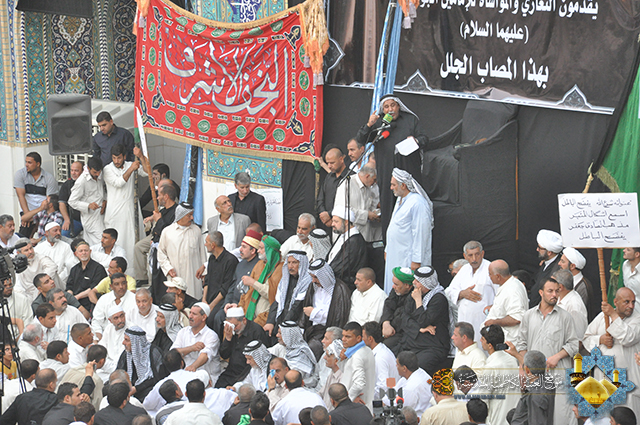 من أرض الغري مدينة أمير المؤمنين علي بن أبي طالب(عليه السلام), توافدت الحشود المؤمنة من محافظة النجف الأشرف لإحياء ذكرى استشهاد الإمام جعفر بن محمد الصادق(عليه السلام), وهم يرفعون آيات الحزن والعزاء بهذه الذكرى الأليمة والمصاب الجلل إلى الإمامين الجوادين(عليهما السلام) حيث أقاموا مجالس العزاء والتأبين في رحاب صحن التوسعة بالصحن الكاظمي الشريف ليجددوا عهد الولاء والوفاء لإمامنا الصادق(عليه السلام) والسير على نهجه القويم.