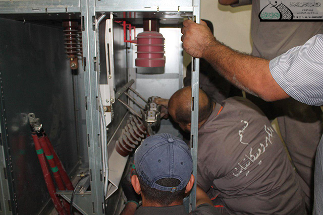 قبل بدء التوافد الكبير لزائري الإمامين الجوادين "عليهما السلام" وإحياء مناسبة الأربعين المباركة، قدّمت شعبة الهندسة الكهربائية التابعة لقسم الكهروميكانيك في العتبة المقدسة جهوداً كبيرة منقطعة النظير لتلبية حاجة الصحن الكاظمي الشريف والشوارع المحيطة بالطاقة الكهربائية، وللتعرف على طبيعة تلك الخدمات تحدث لموقع العتبة الإلكتروني مدير شعبة الكهرباء السيد مازن محسن الحيدري قائلاً: استكمالاً لمشاريع تجهيز الطاقة الكهربائية للعتبة الكاظمية المقدسة والشوارع المحيطة بها، قدّمت ملاكات شعبة الكهرباء مشروعاً جديداً من أهم مشاريع البنى التحتية الحيوية والمهمة، الذي تم إنجازه بجهود وقدرات ملاكات شعبة الكهرباء بالتعاون مع مديرية توزيع كهرباء الكرخ وشعبة محطات (11Kva)، ومديرية توزيع الكاظمية/ قطاع كهرباء الكاظمية المقدسة، وذلك لتأمين الطاقة الكهربائية وبكفاءة عالية وبصورة مستمرة دون انقطاع للصحن الكاظمي الشريف والشوارع المحيطة، حيث تم مدّ قابلو ضغط عالي قياس (3X150mm2)، وبطول 500 متراً في شارع الإمام علي "عليه السلام" وصولاً إلى المحطة الصندوقية ونفق الخدمة الأرضي ليصل إلى محطة كهرباء صحن التوسعة، ويدخل الخدمة عند ذلك كمغذٍ ثانٍ للعتبة المقدسة إلى جانب المغذي القديم ويكون مستثنى من القطع المبرمج.