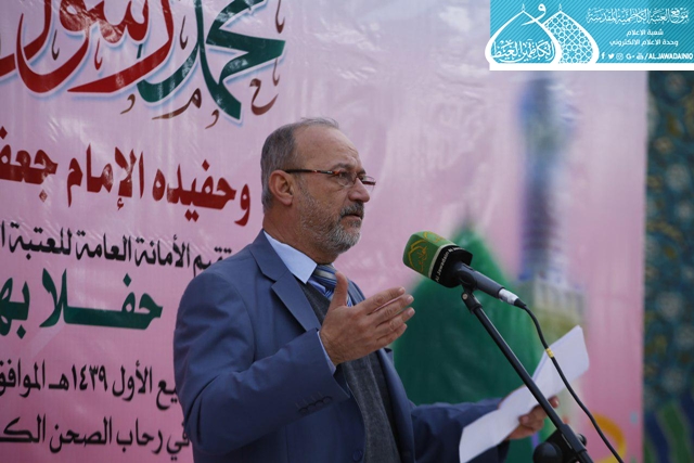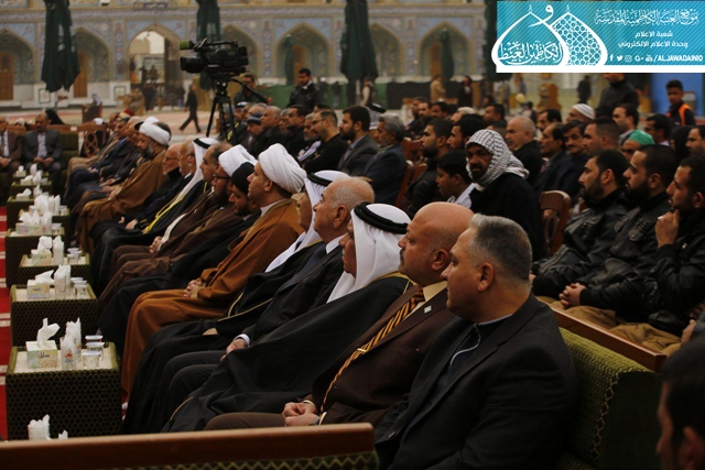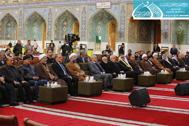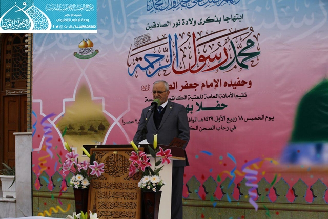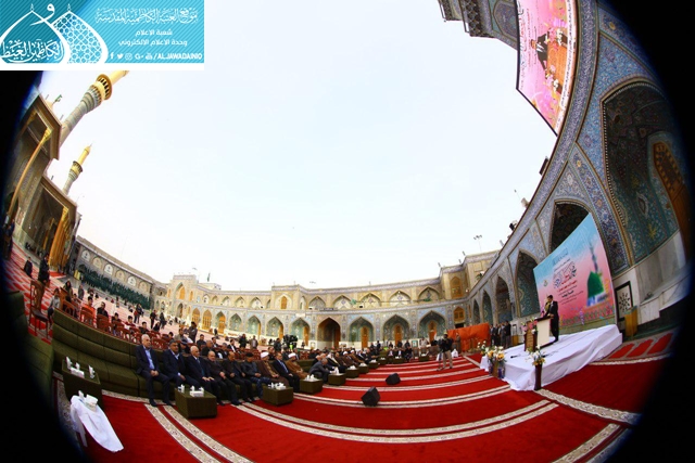 استهل الحفل بتلاوة آيات من الذكر الحكيم شنف الأسماع بها القارئ الحاج همام عدنان, تلاها كلمة العتبة الكاظمية المقدسة ألقاها أمينها العام بيّن خلالها قائلاً: (حفِلت حياة نبينا الأكرم "صلى الله عليه وآله" الشريفة بالكثير من الحوادث والخطوب كتبها التاريخُ بأحرفَ من نور ليهتدي بها المهتدون. وليس الغرض من التعرف على سيرة الرسول الأعظم "صلى الله عليه وآله" مجردَ الوقوف على الوقائع التاريخية والسردَ لطرف من القصص والأحداث التي مرّ بها "صلى الله عليه وآله وسلم"، بل أن يعرف المسلمُ خصوصا والإنسانُ عموما الحقيقةَ الإسلامية التي تجسّدت في حياته الشريفة. فهو "صلى الله عليه وآله وسلم"، أديب الله عز وجل، وكان يقول: ( أنا أديب الله وعليٌ أديبي)، وما حياتُه وسيرتُه إلا قِصةُ إنسان كامل قد اتسع قلبُه لآلام البشر ومشكلاتهم فناضل وجاهد ووقف بحزم وثبات وقوة في وجه القوى الغاشمة المتجبرة من أجل الحرية، من أجل الإخاء بين الناس، من أجل إقامة العدل، من أجل المحبة والرحمة، ومن أجل مستقبل أفضل لجميع الناس، بلا استثناء بين الذين يؤمنون بنبوته ورسالته والذين لا يؤمنون بهما على السواء مصداقا لما جاء في سورة الأنبياء في قوله تعالى: ( وما أرسلناك إلا رحمة للعالمين ).