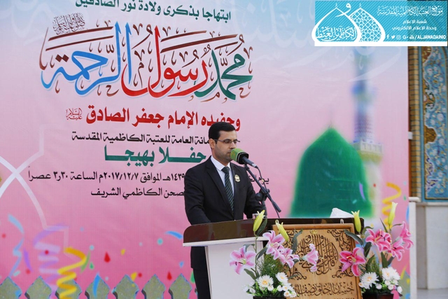 في كل عام ومع بزوغ فجر يوم السابع عشر من شهر ربيع الأول تتوارى الشمس حياءً وخجلاً من سطوع نور النبوة والإمامة وولادة سيد الأنبياء والمرسلين محمد "صلى الله عليه وآله" الذي بعثه الله هداية ورحمة للعالمين لينقذهم من ظلمات الكفر إلى نور الإيمان والتوحيد، وحفيده عميد الصادقين ولسان الناطقين الإمام جعفر بن محمد "عليه السلام"، واحتفاءً بهذه المناسبة المباركة, وغمرة الأفراح التي يعيشها العالم الإسلامي, شهدت رحاب الصحن الكاظمي الشريف احتفالاً مركزياً بهيجاً بهذه المناسبة العطرة بحضور الأمين العام للعتبة الكاظمية المقدسة الأستاذ الدكتور جمال عبد الرسول الدباغ، وأعضاء مجلس الإدارة وعدد من رؤساء الأقسام والشخصيات الدينية والحكومية والاجتماعية.