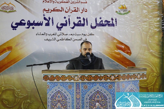 تيمّناً بذكرى ولادة الصادق الأمين محمّد"صلّى الله عليه وآله وسلّم " وحفيده سادس أئمة الهدى الإمام جعفر الصادق "عليه السلام", أقامت الأمانة العامة للعتبة الكاظمية المقدسة/ قسم الشؤون الفكرية والإعلام/ دار القرآن الكريم ضمن برنامجها المُعد لهذه المناسبات العطرة محفلاً قرآنياً في رحاب الصحن الكاظمي الشريف بحضور نخبة من أساتذة وقراء القرآن الكريم، وجمعٌ من زائري الإمامين الجوادين "عليهما السلام", وتُليت خلاله باقة من التلاوات القرآنية عطّرت بها أصواتهم الشجيّة أجواء الطهر والقداسة, حيث شارك فيها كلّ من القارئ مالك الدلفي، وعلي فلاح السوداني، والطفلة الحافظة فاطمة بختياري والطفل أمير حسين من الجمهورية الإسلامية الإيرانية، كما تخلل المحفل مشاركة فرقة إنشاد الجوادين، وتوزيع الشهادات التقديرية والهدايا على المشاركين.
