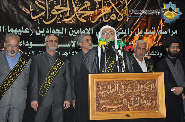 أجواء من الحزن والأسى احتضنتها العتبة الكاظمية المقدسة في رحاب الإمامين الجوادين (عليهما السلام) لتجدد أحزان أهل بيت النبوة وللإعلان عن المصيبة الراتبة التي أفجعت قلوب الموالين ألا وهي الذكرى الأليمة لاستشهاد تاسع أئمة الهدى الإمام محمد بن علي الجواد, (عليه السلام) حيث أجرت الأمانة العامة للعتبة الكاظمية المقدسة المراسم السنوية لاستبدال الرايات الخضراء التي تخفق فوق القبتين الشامختين للإمامين الجوادين(عليهما السلام) برايات الحزن السوداء بحضور الأمين العام للعتبة الكاظمية المقدسة أ.د (جمال الدباغ) وأعضاء مجلس الإدارة والعديد من الشخصيات الدينية والاجتماعية وخدمة العتبة المقدسة.