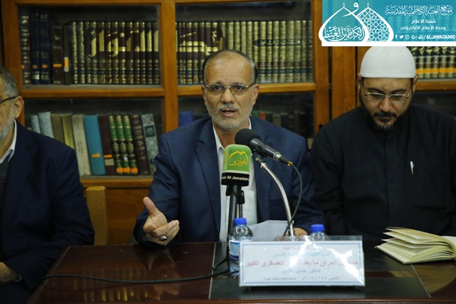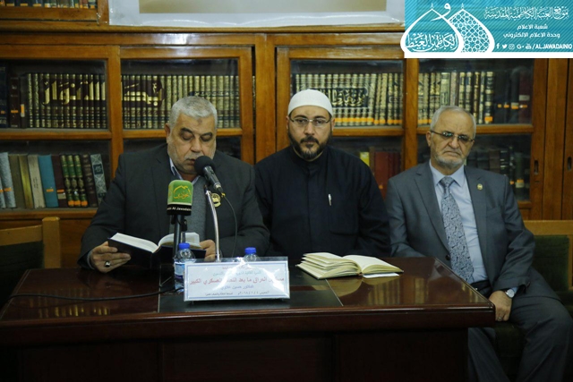 عقدت مكتبة الجوادين "عليهما السلام" العامة في الصحن الكاظمي الشريف الندوة الثقافية الشهرية التاسعة والتسعين مساء عصر الخميس 4 كانون الثاني 2018 بعنوان: (مستقبل العراق ما بعد النصر العسكري الكبير)، بحضور الأمين العام للعتبة الكاظمية المقدسة الأستاذ الدكتور جمال عبد الرسول الدباغ وعدد من الشخصيات العلمية والثقافية والأكاديمية. استهلت الندوة بتلاوة معطرة من الذكر الحكيم ، بعدها تحدث فضيلة الشيخ عماد الكاظمي عن آثار الفتوى التي أعادت هيبة العراق وازدهار قوته العسكرية، وأكد على وجوب توثيق هذه المرحلة من تاريخ العراق منذ صدور فتوى الجهاد الكفائي، لكي تُنقل إلى أجيالنا القادمة بحرفية وأمان، حيث أن فتوى الجهاد التي صدرت عام 1920 أسست الدولة العراقية والفتوى الجهادية المباركة في عام 2014 حافظت عليها.