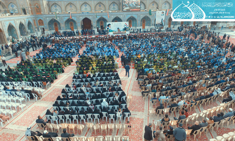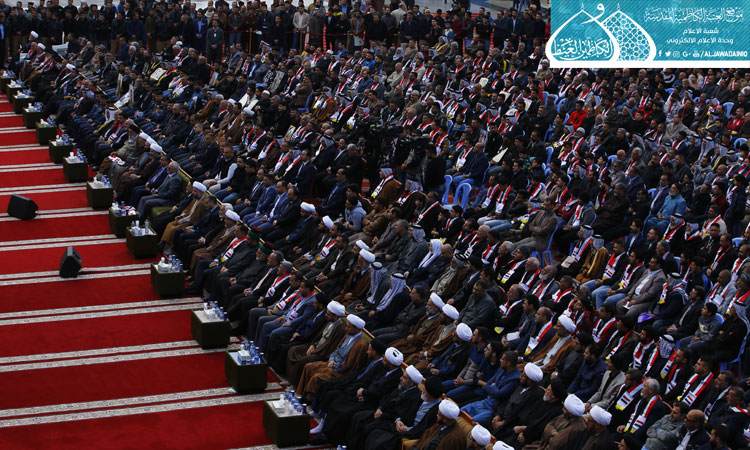 استهل الحفل بتلاوة أي من الذكر الحكيم شنّف بها أسماع الحاضرين القارئ السيد عبد الكريم قاسم، أعقبها النشيد الوطني وقراءة سورة الفاتحة المباركة ترحماً إلى أرواح شهدائنا الأبرار، تلتها كلمة الأمانة العامة للعتبة الكاظمية المقدسة ألقاها أمينها العام قائلاً: ( حينما نعق أهل الباطل بصيحاتهم كان لزاماً أن يقوم المُصلح الحكيم بدوره. وهذا ما شعر به المرجع الأعلى آية الله العظمى السيد علي الحسيني السيستاني "دام ظله الوارف"، حين أطلق فتواه الجهادية لمواجهة الباطل، حتى يهزمه، فجاءت كلماتهُ لتَجلي رينَ القلوب، وتَرفعُ وقرَ الأسماع، وتَفتحُ آفاقَ البصيرة، ويَقول أهل الحقِ قولهم ويملأ الأرضَ فِعلهم، ويحافظ على شرعةِ الإسلام الحقيقي، وصيانةِ الحُرمات، وردعِ الباطل أينما حلّ، فكان النداء مدوياً مُفزعاً الباطل وأهله حتى انحسر شيئاً فشيئاً.