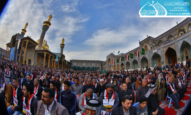 بعدها ارتقى ممثل المرجعية الدينية العُليا سماحة الشيخ حسين آل ياسين وألقى كلمة بهذه المناسبة منطلقاً من قول الإمام علي بن الحسين السجاد "عليه السلام" :( أنتم الشعار دون الدثار)، وكلمة سماحة المرجع الديني الأعلى آية الله العظمى سماحة السيد علي الحسيني السيستاني "دام ظله الوارف" عندما قال للعراقيين: (أنا خادم لكم .. ومن يقبلني فهو المتفضل عليّ)، فأنتم يا عوائل الشهداء بتضحياتكم وصبركم من حافظتم على هذا البلد والدولة العراقية وبشهادة شعبكم بما نص عليه قانون الحشد الشعبي رقم (40) لعام 2016 والمنشور في جريدة الوقائع العراقية في العدد (4429)، وأشار سماحته أن عُلماءنا هم مَن أسسوا الدولة العراقية بعد تصديهم للمحتل الانكليزي في العام 1914وفي ثورة العشرين واليوم سماحة المرجع الديني الأعلى آية الله العظمى السيد علي الحسيني السيستاني "دام ظله الوارف" هو من حافظ عليها، ولو نستقرأ فتاواه المباركة نجد كُلّها نصرٌ للعراق والعراقيين منذ عام 2003 بدءً من فتوى حماية العراق وأموال الدولة العراقية، وفتوى الدستور وكتابتهِ بأيادٍ عراقية والتصويت عليه باستفتاء شعبي وقانوني، وكذلك عندما ثبّت في الدستور أن الإسلام هو الدين الرسمي للبلاد، فضلاً عن ضمان حقوق المجتمع والعيش السلمي المشترك والاحترام المتبادل بين العراقيين، وتأكيد سماحته على توفير الخدمات والبنى التحتية ومنها الزراعة والصناعة والصحة والتعليم ومختلف المرافق العامة وغيرها من التوجيهات الأخرى التي جاءت متعاقبة في خُطب الجمعة، ولا يسعنا إلا أن نقول لتلك العوائل المضحية بيّضَ الله وجوهكم ورفعَ قدركم ونسأله تعالى أن يحفظ آثار هذه الجهود والتضحيات.