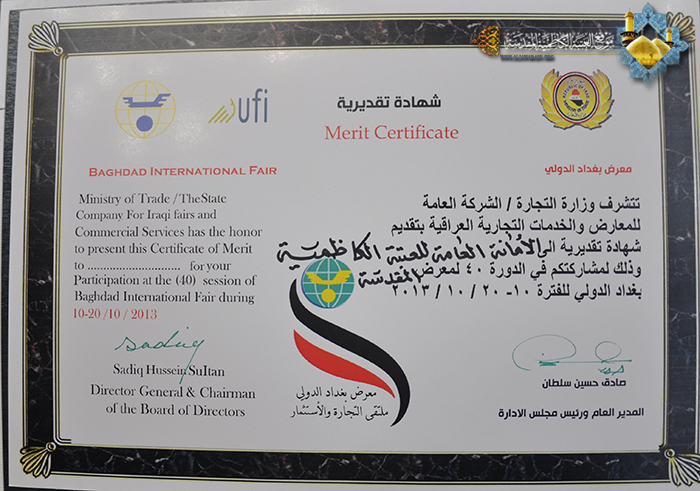 حرصت الأمانة العامة للعتبة الكاظمية المقدسة للمشاركة في معرض بغداد الدولي في دورته الأربعين والذي عقد تحت شعار(معرض بغداد الدولي 40 ملتقى التجارة والاستثمار), لأجل الانفتاح والتواصل مع المؤسسات كافة وإيصال رسالتها الواضحة للعالم أجمع. وتميزت مشاركة العتبة الكاظمية المقدسة بجناحها من خلال شعبة النقش والزخرفة وشعبة الحرف اليدوية التابعتين لقسم الشؤون الخدمية بلوحاتهم وأعمالهم الفنية المتميزة بروعتها وجمالها والتي استعرضت فيها المعالم المشرقة للصحن الكاظمي المقدس والإرث الحضاري التي تتمتع به مدينة الكاظمية المقدسة بأسلوب فني قوامه الأصالة والرقي والإبداع, واستقطبت هذه الأعمال الفنية اهتمام وإعجاب الجمهور الزائر لجناح العتبة والذي شمل عدد كبير من المثقفين والأكاديميين والشخصيات السياسية والشرائح الاجتماعية المختلفة, وكان لقسم العلاقات العامة في العتبة الكاظمية المقدسة دوراً مميزاً من خلال الإعداد والتنسيق لهذا المعرض. وقد تعززت هذه الإشادة من خلال حصولها على درع المشاركة فضلاً عن شهادة تقديرية دعماً للجهود الثقافية المساهمة في هذا الكرنفال العراقي, والتي عكست الصورة المثلى لكنوز العتبة الكاظمية المقدسة المتحققة بفضل بركات الإمامين الجوادين(عليهما السلام).