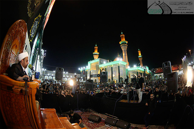 كما أكد في حديثه على أهمية زيارة الإمام موسى بن جعفر"عليه السلام" والهدف الذي بدأت تجتمع من أجله تلك الحشود المليونية ألا وهو تجديد عهدها للإمامين الجوادين"عليهما السلام" على أداء واجباتها الشرعية وإعلان حالة ولاءها للقيم السماوية وتعظيم شعائر الله تعالى، بحضور الحشود الغفيرة التي توافدت إلى الصحن الكاظمي الشريف لا يُثنيها بُعد المسافات ولا حر ولا برد ولا نزول الغيث بل هدفها إحياء هذه الفجيعة الراتبة.