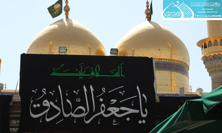 اتَّشحت العتبة الكاظمية المقدسة بمظاهر الحزن والأسى إيذاناً لاستقبال الذكرى الأليمة لاستشهاد المؤتمن على الشرع المُبين والمدافع عن عقيدة سيد المرسلين "صلّى الله عليه وآله" الإمام جعفر بن محمد الصادق"عليه السلام"، حيث تم نشر السواد والكلمات النورانية على الضريح الشريف للإمامين الجوادين "عليهما السلام" وأعمدة الطارمات والأواوين للحرم المطهر.