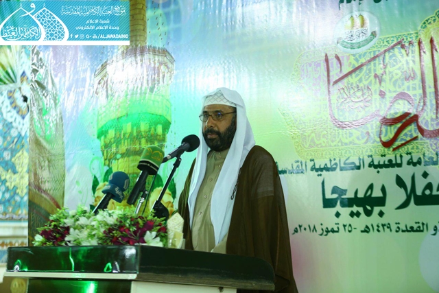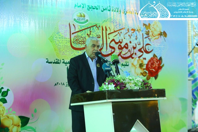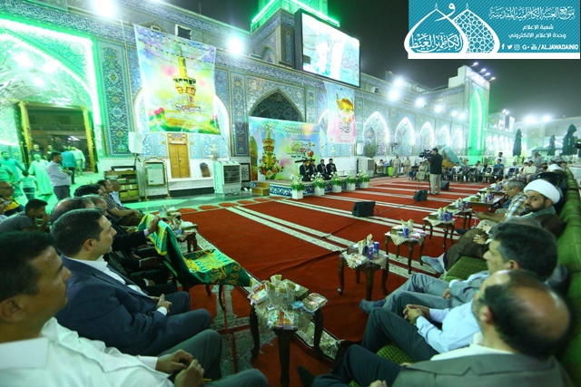استهل الحفل بتلاوة آيات من الذكر الحكيم شنّف بها اسماع الحاضرين السيد عبد الكريم قاسم, ثم تلاها كلمة الأمانة العامة للعتبة الكاظمية المقدسة ألقاها نائب الأمين العام للعتبة الكاظمية المقدسة بيّن فيها قائلاً: ( لأئمة أهل البيت "عليهم السلام" ومنهم صاحب الذكرى الذي نحتفي بمولده اليوم .. خارطتهم السياسية في الحكم، فهم يرون أن الحكم يجب أن يكون وسيلة لإقامة العدل والحق، وهذا هو ما سيتحقق إن شاء الله تعالى بظهور صاحب العصر والزمان "عجل الله فرجه الشريف"، كما يرون أهداف الحكم هو نشر السلام والتآلف بين الناس، فالحكم عندهم أداة لرخاء الشعوب وأمنها، ولا قيمة للحكم عندهم إذا لم يحقق هذه الأهداف السامية، ولا قيمة للسلطة عندهم ما لم يقم في ظلها الحق والعدل، وهذا ما أكد عليه الإمام الرضا "عليه السلام" عندما تسنّم ولاية العهد).