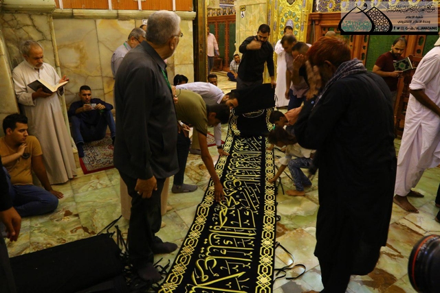 وعن طبيعة العمل ومدة الانجاز تحدث لموقع العتبة الإلكتروني مدير شعبة الخدمات الشيخ حسن هادي طه قائلاً: ان الوشاح الذي تشرّف نصبه على الضريح الشريف للإمامين الكاظمين هو هدية هيأة قائم آل محمد في دولة باكستان، وشهدت مراحل عمله إشراف مباشر وتعاوناً مشتركاً من قبل فريق وحدة الخياطة والتطريز.