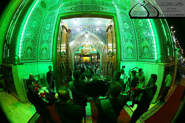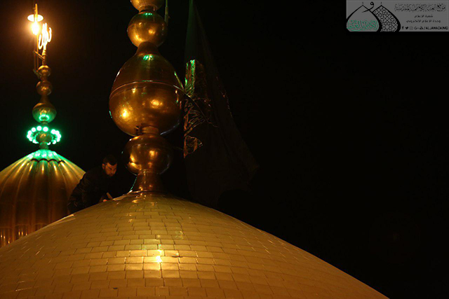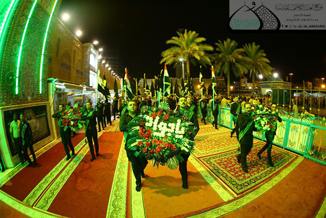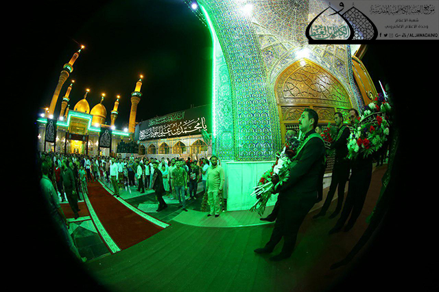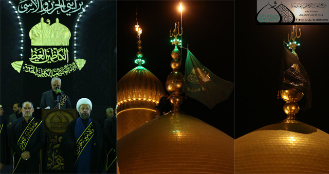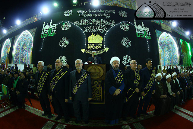 وسط أجواء يسودها الحزن والأسى وتضوع بالحب والولاء للنبي الأكرم محمد وأهل بيته الأطهار"عليهم السلام" وقفت الجموع الموالية في رحاب الصحن الكاظمي الشريف حداداً على المصيبة الراتبة التي أفجعت قلوب الموالين ألا وهي ذكرى استشهاد نور الهدى الإمام محمد بن علي الجواد "عليه السلام"، حيث أقامت الأمانة العامة للعتبة الكاظمية المقدسة المراسم السنوية لاستبدال الرايات الخضراء التي تعلو القبتين الشامختين للإمامين الجوادين "عليهما السلام" برايات العزاء والحزن السوداء، بحضور الأمين العام للعتبة الكاظمية المقدسة الأستاذ الدكتور جمال عبد الرسول الدباغ وأعضاء مجلس الإدارة وخدّام الإمامين الجوادين وممثلي خدّام العتبات المقدسة والمزارات الشريفة وممثلي دوائر ديوان الوقف الشيعي وعدد من القيادات الأمنية وشخصيات دينية واجتماعية وجمع غفير من الزائرين.