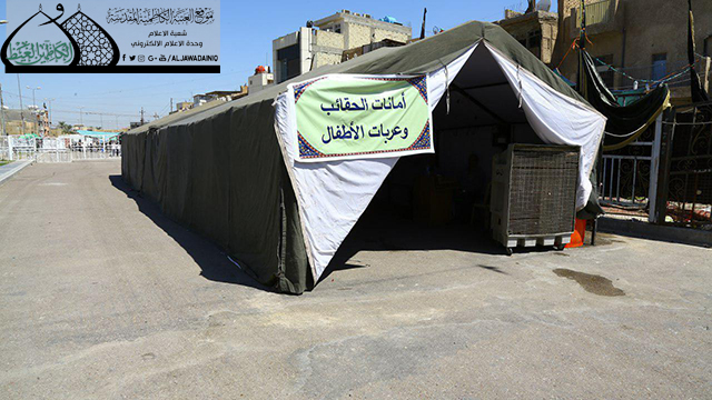 إذ عملت وحدة الأمانات والمفقودات في تهيئة المخيمات بمساحات كبيرة في الشوارع المحيطة بالصحن الشريف المخصصة لتسلم حقائب الوافدين فضلاً عن تأهيل وتهيئة محطات لتسلم أجهزة الهاتف النقال المتواجدة في جميع مداخل العتبة المقدسة.