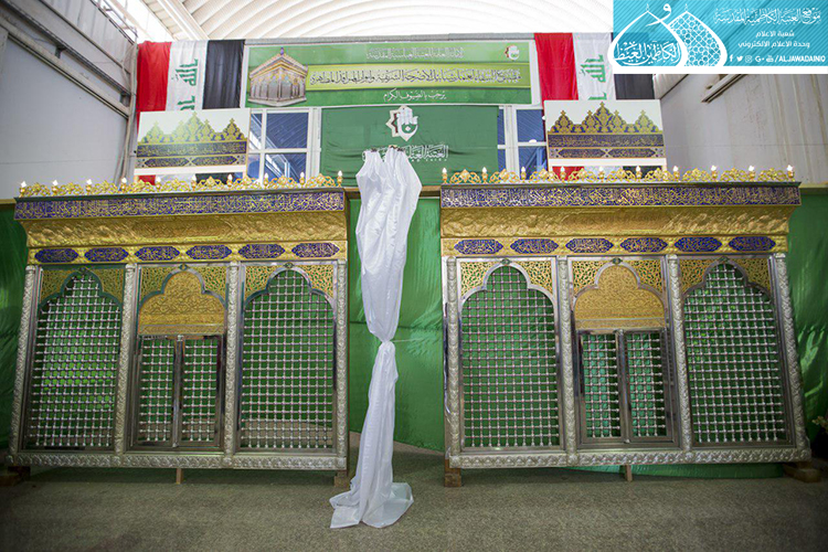 وشهدت هذه المناسبة المباركة إلقاء كلمة للأمين العام للعتبة الكاظمية المقدسة الأستاذ الدكتور جمال عبد الرسول الدباغ قائلاً: ( على بركة الله نلتقي في هذا المكان المبارك وهو مصنع السقّاء لإزاحة الستار عن شباكين موقعهما في العتبة الكاظمية المقدسة، نحمد الله تعالى على هذا التوفيق، وهو في الواقع توفيقان، الأول لخدم الإمامين الجوادين "عليهما السلام" إذ أنهم أدوا بعض ما عليهم تجاه المكان الذي يعملون فيه، والثاني لخَدَمةِ ابي الفضل العباس "عليه السلام"على ما أبدعوه في صناعة هذه الشباكين.