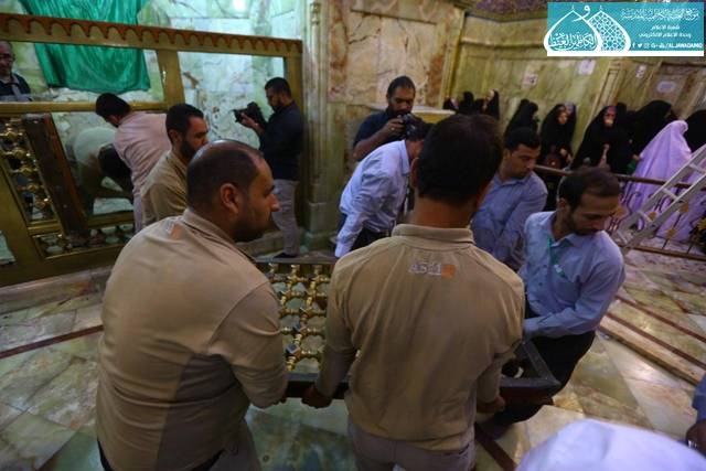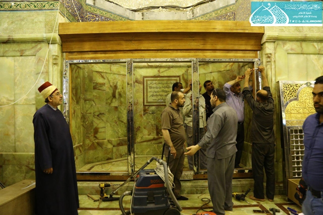 أما عن طبيعة العمل مبيناً: كانت هناك جهود واضحة للجنة من خلال المتابعة الدورية والمستمرة في أعمال تصنيع الشبّاكين حيث كانت هناك سلسلة من النقاشات لأجل الحفاظ على مضامين الشبّاكين القديمين، وما احتوتهما من آيات قرآنية وعبارات نورانية وأبيات شعرية، ومن هنا لا يسعني إلا أن أتقدّم بالشكر والتقدير لكلّ الجهود التي ساهمت في هذا الانجاز المبارك.