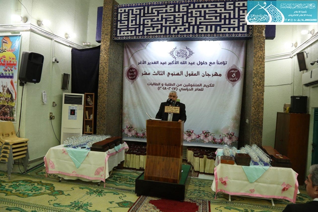 وأوضح سماحته أن اليوم الثالث لمهرجان العقول السنوي يشهد تكريم (126) طالباً وطالبة من المتفوقين والأوائل في الأقسام الست عشرة في الجامعة التكلوجية، كما وصف التفوق " بأنه قضية جميلة وهدف مهم من أهداف الحياة، لذا يجب أن نكون متفوقين في مجالات الحياة، ونسعى لفعل الخير لأجل نشر الخير، ولا يتكلم أي واحدٍ منّا إلا عن علم، كما ينبغي أن نستوعب من أعمق أعماقنا الطريقة العلمية والحِرْفية، في كلّ مفصل من مفاصل شؤوننا "، داعيا إياهم مواصلة مسيرة النجاح والتفوق على الصعيدين العلمي والعملي لما فيه خير لهم ولبلدهم.