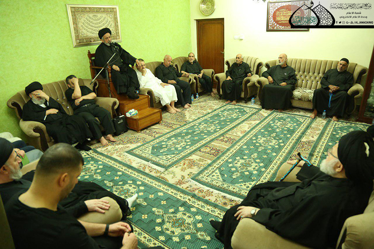 ما أن يأتي شهر محرم الحرام إلا وترى بيوت الكاظمية المقدسة قد اتشّحت بالسواد وبات الحزن والأسى يتجوّل في وجوه أهالي المدينة، عسى أن يحسن الله لهم العزاء، وانطلاقاً من مسؤوليتها ورسالتها الإنسانية في إحياء ذكرى استشهاد أبي الأحرار الإمام الحسين "عليه السلام" حضر وفد الأمانة العامة للعتبة الكاظمية المقدسة مجلس العزاء الحسيني المُقام في دار سماحة السيد مهدي الصدر "طاب ثراه"، والذي حضره عدد من الشخصيات الدينية وجمع من المؤمنين.