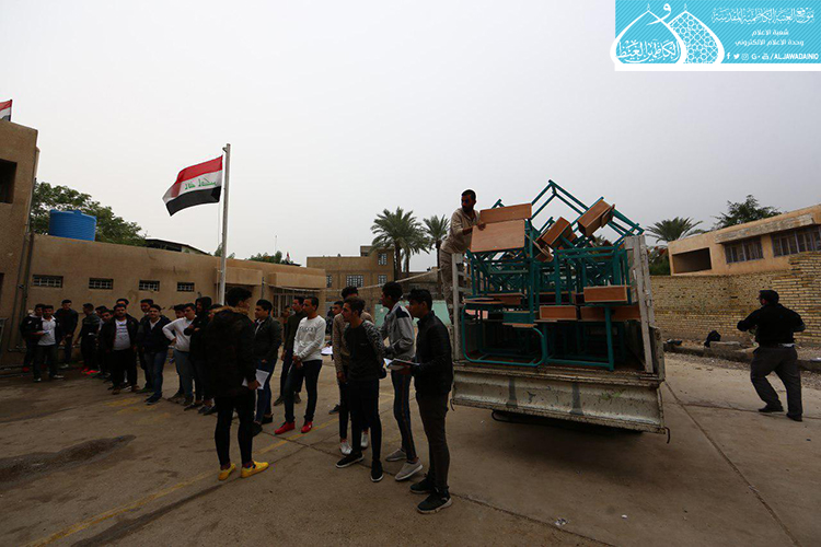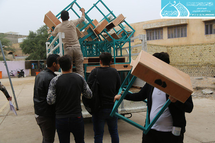 حيث تم تسليم الوجبة الأولى من المقاعد الدراسية الجديدة ضمن المرحلة الرابعة إلى إعدادية الإمام الرضا "عليه السلام"، وتسلّم وجبة أخرى من المقاعد المتضررة من متوسطة أبي العلاء المعري في مدينة الكاظمية المقدسة.