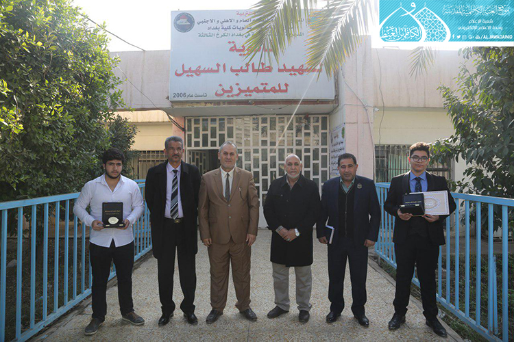 في خطوة تعكس مدى الاهتمام الذي توليه الأمانة العامة للعتبة الكاظمية المقدسة من خلال دعمها لمواهب الطلبة، وإيمانها في تعزيز الحالة الإبداعية لديهم وتوطيد الثقة بأنفسهم، ورفع قدراتهم التنموية، سعياً لوصولهم إلى غاية الطموح، زار وفد خدّام العتبة الكاظمية المقدسة ثانوية طالب السهيل للمتميزين، التابعة إلى تربية محافظة بغداد الكرخ الثالثة، تقدّم الوفد خلالها بالتهنئة إلى الملاكات التربوية والتدريسية والطلبة المبدعين الذين سجلوا المرتبة الأولى على ثانويات العراق وتكريم أعمالهم الإبداعية في مهرجان الابتكارات العلمية السنوي الأول الذي أقامته وزارة الشباب والرياضة.