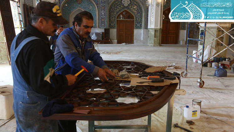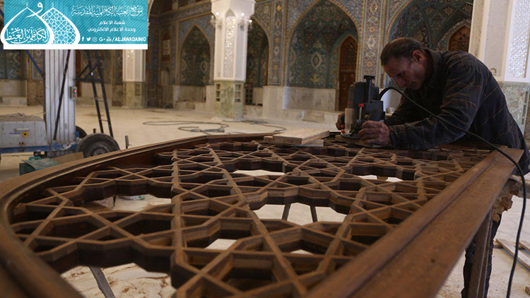مشروع مسقف الصحن الكاظمي الشريف يشهد نصب الأبواب الخشبية وأعمال الانهاءات