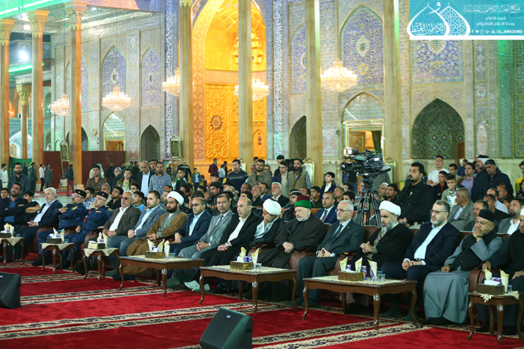 استٌهل الحفل بتلاوة آيات من الذكر الحكيم شنّف بها القارئ السيد عبد الكريم قاسم أسماع الحاضرين، تلتها كلمة الأمانة العامة للعتبة الكاظمية المقدسة ألقاها أمينها العام قائلاً: ( مع تقادمِ الأزمانِ، تعاودُنا في شهرٍ تعلوهُ غرةٌ غرّاءُ وهو شهرُ رجبٍ الأصبِّ، وقائعُ باسقاتٌ، حيث ولادةُ إمامِ المتقينَ وحفيدِهِ جوادِ العترةِ الهاديةِ "عليهما السلام". فمن المناسبِ جداً أن لا ينحصرَ الاحتفالُ بهاتينِ المناسبتينِ البهيَّتينِ في زاويةِ الثناءِ والإطراءِ الذي لا يؤدّي أي خدمةٍ لمنطقِ الوعي الإسلامي، أو أن ننظرَ إلى الولادتينِ الميمونتينِ على أنَّهما مجردُ استرجاعٍ لذكرى طيّبةٍ من دونِ أن نُدركَ مغزاهما الإنساني. فولاداتُ الأئمةِ الأطهارِ "عليهم السلام" هي نقاطٌ مضيئةٌ في حياتِنا يجبُ أن لا نمرَّ بها مروراً سطحياً، لذلك باتَ من اللبِّ أن نجعلَ من هذهِ المناسباتِ الروحيةِ محطّاتٍ للتزود بالزاد، وباعثاً ذاتياً يُحرّكُ فينا الصمودَ والجهادَ، ويقلبُ بوارَ نفوسِنا جناناً، وذلك يكون بعد أن نَعِيَ قيمتَها ونُحسنَ استثمارَها ونستلهمَ من هديِها. فالعِبرةُ التي يجبُ أن نخرجَ بها من هذا الإحياءِ والاحتفاءِ في حاضرِنا الراهنِ ونحنُ نعيشُ هذهِ الأوضاعَ المضطربةَ، حيث تشتدُّ حملةُ الإرهابِ المسعورةُ على الطليعةِ المؤمنةِ والبقيةِ الصامدةِ، هو أن نتابعَ خطواتِ أصحابِ هذه الذكرى في الدفاعِ عن بيضةِ الإسلامِ، وأن نجعلَ من جهادِهم رائدَنا في كفاحِنا ونضالِنا اليوم ضد أعدائهم.