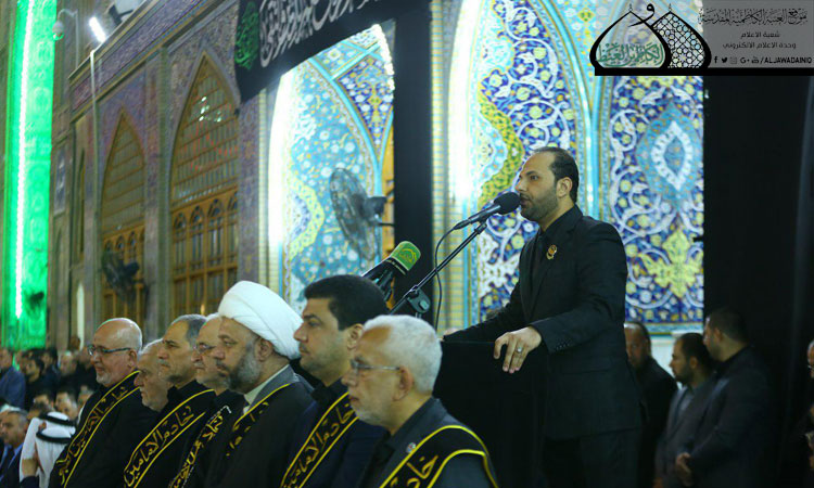 استُهلت المراسم بتلاوة مباركة من الذكر الحكيم شنّف بها قارئ العتبة المقدسة الدكتور رافع العامري أسماع الحاضرين، بعدها مشاركة لمواكب مدينة الكاظمية بمراسم تأبينية حاملين فيها رايات الولاء بهذه الفاجعة الأليمة، أعقبها كلمة الأمانة للعتبة الكاظمية المقدسة والتي ألقاها أمينها العام قائلاً: ( لقد ظلَّ دأبَ الظالمينَ في كلِّ عصرٍ ومِصرٍ أن ينالوا من أولياءِ اللهِ الذين خصَّهم بالكرامةِ ورفعَهم درجاتٍ وأوْكَلَ إليهم أمرَ الأمَّةِ بشؤونِها كافَّةً، فعَمَدوا إلى وضعِ العصيِّ في عَجَلَةِ المسيرةِ الإنسانيةِ نحو التكاملِ، ووضعِ العراقيلِ أمامَ كلِّ نهضةٍ باتجاهِ الخيرِ واستتبابِ العدلِ ونشرِ الفضيلةِ؛ كلُّ ذلكَ من أجلِ فرضِ سيطرتِهم على مقدَّراتِ الأممِ وإشباعِ شهواتِهم في بسطِ النفوذِ والتحكّمِ برقابِ العبادِ والغرقِ في اللذائذِ المحرّمةِ. فكانتْ حلقةً من تلك الحلقاتِ الزمنيةِ هي مواجهةُ الإمامِ الكاظمِ "عليه السلام" لطاغوتِ عصرِهِ عندما أثبتَ الإمامُ "عليه السلام" للدنيا زيفَ تمثيلِ حكّامِ زمانِهِ للمسلمينَ وانحرافِهمْ عن مسيرةِ الإسلامِ الحقَّة. بعدها غودِرَ مسموماً على يدِهم، فأبى التاريخُ إلّا أن يسجّلَ المدينةَ باسمِهِ ويكتبَ لها الخلودَ بفضلِهِ، وأقصى التاريخُ عدوَّ الإمامِ فجعلَ المدينةَ التي كان يدّعيها تنبذُهُ وتضنُّ عليهِ حتى بموضعٍ لجثمانِهِ يحويهِ في ترابِها.