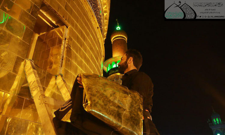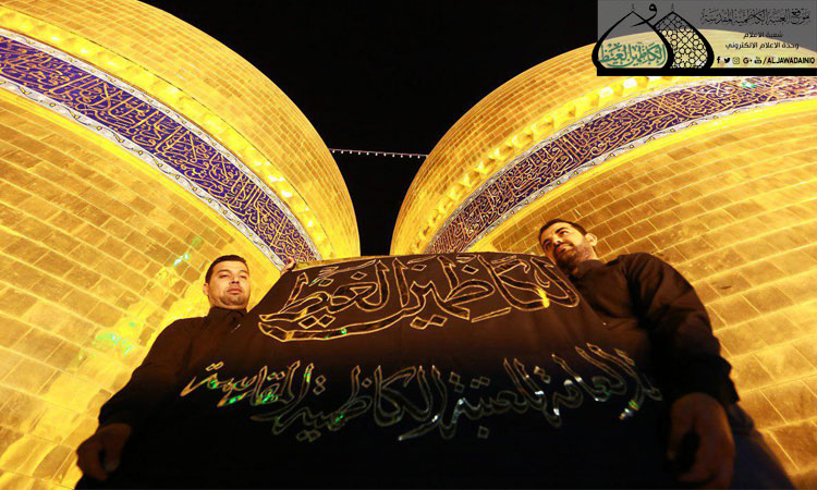 مرة أخرى يُجدد محبو أهل بيت النبوة عزائهِم وهم يستذكرون إمامهم كاظم الغيظ "عليه السلام" وما تعرّض إليه من قبل حكّام وطواغيت بني العبّاس من أساليب همجية، وهو في قعر السجون وظلم المطامير، إذ يقفون اليوم على أعتابه مُلبّين النداء لمولاهم المظلوم المسموم باب الحوائج الإمام موسى بن جعفر الكاظم "عليه السلام"، يتجدّد فيهم العزم وهم يرفعون رايتَيْ الحزن والأسى، إذ شهدت رحاب الصحن الكاظمي الشريف مساء الجمعة 21 رجب الأصب 1440هـ، الموافق 29 آذار 2019 تبديل رايتَيْ قبتَيْ الإمامين الجوادين "عليهما السلام" برايتَيْ الحزن السوداويتين وسط مراسم مهيبة جرت بحضور الأمين العام للعتبة الكاظمية المقدسة الأستاذ الدكتور جمال عبد الرسول الدباغ، والسادة أعضاء مجلس الإدارة، وممثل المرجعية الدينية العُليا سماحة الشيخ حُسين آل ياسين، وكوكبة من السادة الأجلاء والمشايخ الفضلاء في المشروع التبليغي الحوزوي، وممثلي العتبات المقدسة والمزارات الشريفة، وعدد من الشخصيات الرسمية والاجتماعية وزائري الإمامين الجوادين "عليهما السلام".