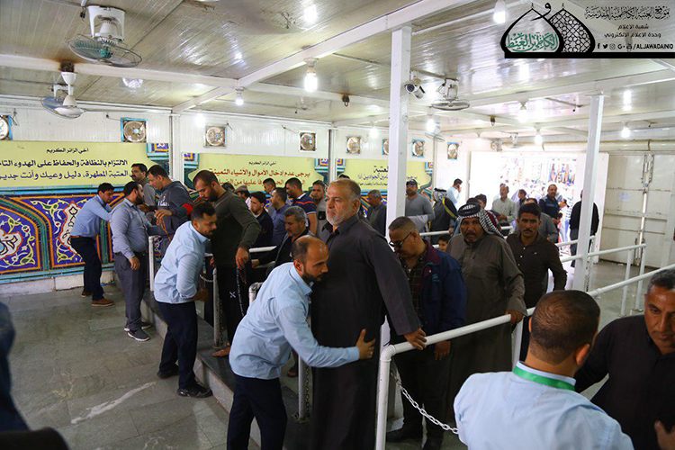 واستعداداً لهذه المناسبة استنفر قسم حفظ النظام في العتبة الكاظمية المقدسة جهوده ووضع الخطط المدروسة لأجل حماية أمن الزائرين وتقديم التسهيلات المتعلقة بأداء زيارتهم، وعن طبيعة تلك الجهود تحدث رئيس القسم السيد جهاد ضياء الحسيني قائلاً: ساهم قسم حفظ النظام في تقديم خدماته للزائرين وحقّق تقدماً ملحوظاً على المستويين الأمني والتنظيمي وفق الخطط المرسومة لهذه المناسبة، وبيّن أن هناك مهام رئيسة للخدم تشمل المحافظة على أمن الزائرين، وتقديم التسهيلات المتعلقة بأدائهم لمراسم الزيارة، وانسيابية دخولهم إلى الصحن الكاظمي الشريف ومغادرتهم، واتخاذ بعض الإجراءات التنظيمية التي تتناسب مع حجم الزيارة المباركة حيث تم فتح جميع المنافذ والممرات للدخول والمغادرة، وتأمين انسيابية حركة الزائرين، وتوسيع نقاط التفتيش لتقليل الزخم الحاصل على الأبواب الرئيسة من خلال إسناد كوكبة من المتطوعين.