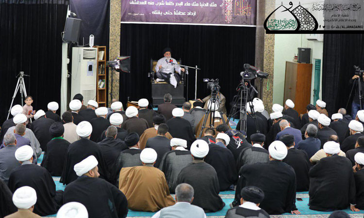 ما يهمنا من خطاب في هذه المناسبة النظر في المشاكل سيما مواقع التواصل الاجتماعي فهي مصادر معرفة ومؤثرة ولها لمسة على أذهاننا، بل مصادر إيجابية ولكن غير منضبطة يدخل إليها الغَثّ والسَمين، إذ سعينا جاهدين أن نلتفت إلى تلك الأسئلة المثارة في مواقع التواصل واستطعنا أن نؤثر، ودعوتي للجميع لا بد من ارتباط وثيق مع المرجعية المباركة لأنها النجاة وبرّ الأمان، ونحن إن شاء الله تعالى ما دمنا في ركاب المرجعية المباركة فإنها صوت الحقّ والمظلوم.