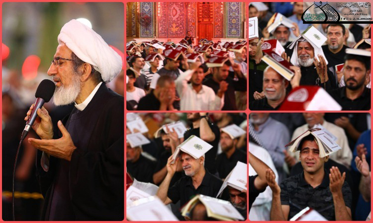 كما أكد سماحته أن توجّهنا في هذه الليلة المباركة إلى الباري عزّ وجل هو أن نُحييّ ديوان أعمالنا، واللقاء مع الله تعالى بقلب سليم مطمئن لنلوذ به، وندخل حصنهِ لطلب نجاتهِ وشمولنا بواسع رحمته، ونتوب إليه توبة نصوحة من خلال هجران الذنوب مستشهداً بقوله تعالى: ( يَا أَيُّهَا الَّذِينَ آمَنُوا هَلْ أَدُلُّكُمْ عَلَىٰ تِجَارَةٍ تُنجِيكُم مِّنْ عَذَابٍ أَلِيمٍ ).