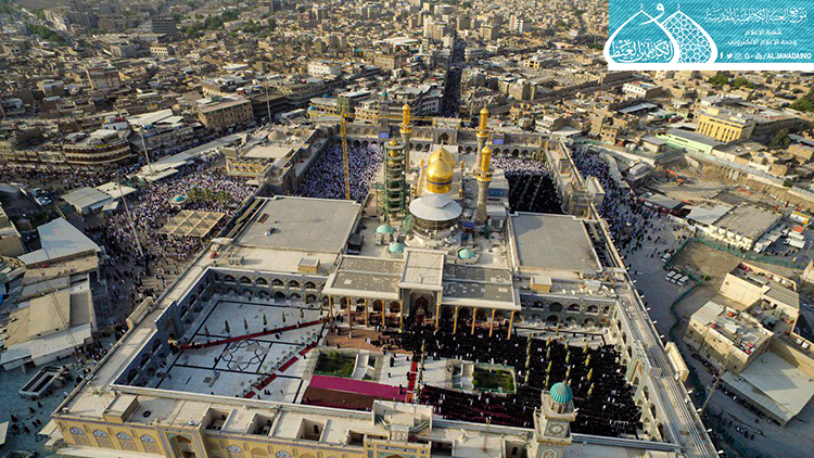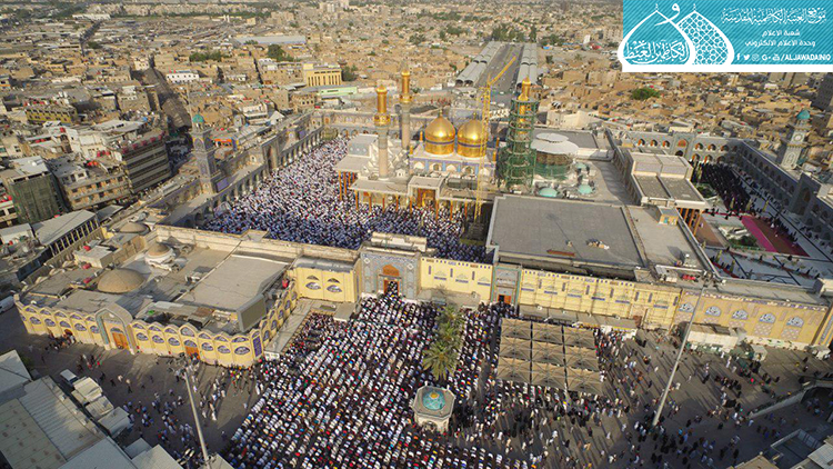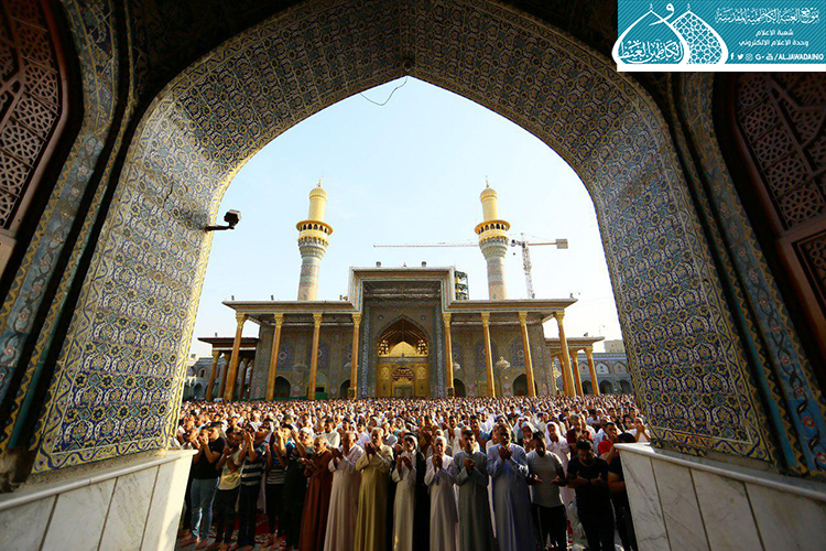 مع إشراقة اليوم الأول لشهر شوال المكرّم 1440هـ، والذي تجلّت فيه فيوضات الرحمة الإلهية بأروع صورها في مكان يسعها حباً ويضفي عليها ألقاً، شهدت رحاب الصحن الكاظمي الشريف ومنذ ساعات الصباح الأولى وقائع صلاة عيد الفطر المبارك حيث تراصّت صفوف الجموع الغفيرة من زائري الإمامين الجوادين "عليهما السلام" التي توافدت لأداء الصلاة ومراسم الزيارة لتتضرّع إلى بارئها بخشوع وطاعة في أول أيام العيد السعيد.