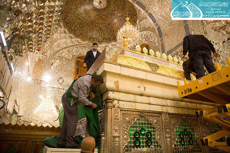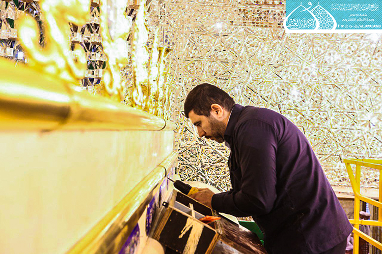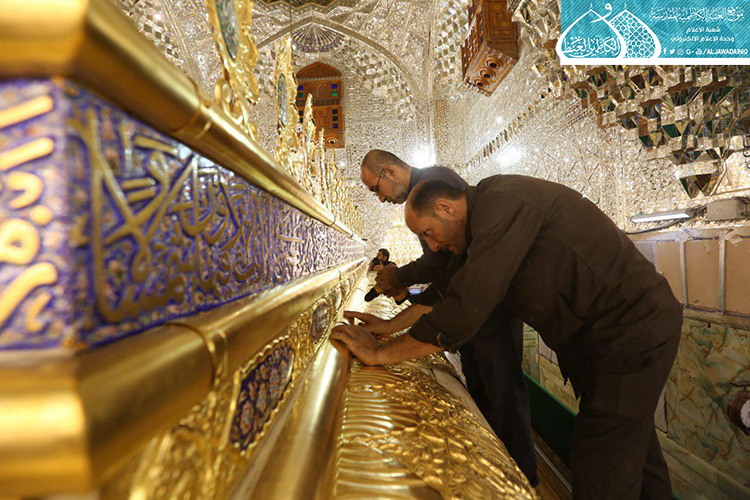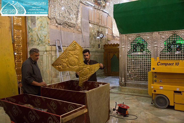 الصحن الكاظمي الشريف .. يشهد أعمال نصب وتركيب الأجزاء العلوية لشبّاك ضريح الإمامين الجوادين "عليهما السلام" بعد صيانتها وإعادة تذهيبها