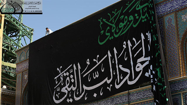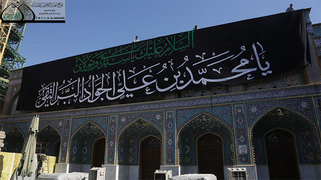 اتَّشحت العتبة الكاظمية المقدسة بمظاهر الحزن والأسى إيذاناً لاستقبال الذكرى الأليمة والفاجعة الكبرى لاستشهاد الإمام محمد بن علي الجواد "عليه السلام"، حيث تم نشر السواد والكلمات النورانية على ضريح الإمامين الجوادين "عليهما السلام" وأرجاء الصحن الشريف، وذلك لتجديد العهد والولاء لإمامنا الجواد "عليه السلام"، والاقتداء بسيرته المباركة والتأسي به، تزامناً مع إقامة مراسم إستبدال رايتي الإمامين الكاظمين الجوادين عليهما السلام" برايتي السواد فوق القبتين الشريفتين التي ستشهدها العتبة الكاظمية المقدسة مساء يوم الثلاثاء 26 ذي القعدة 1440 ه الموافق 30/7/2019، الساعة 8,30 بإذنه تعالى.