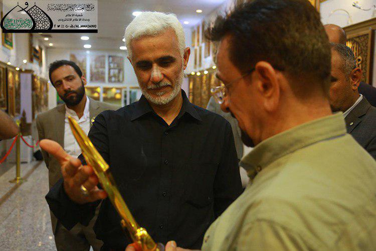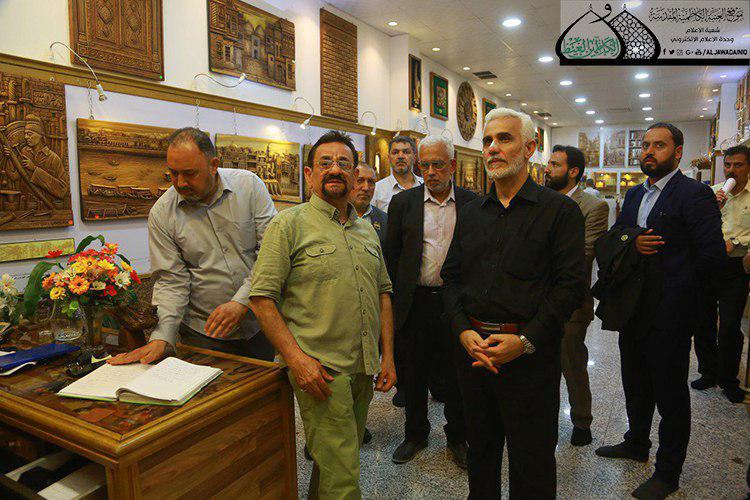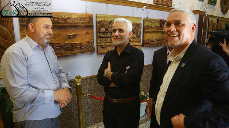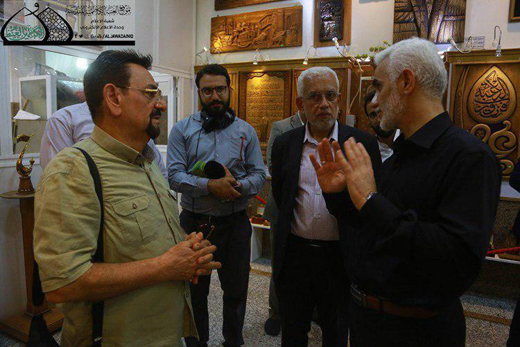 زار الأمين العام للعتبة الكاظمية المقدسة الأستاذ الدكتور حيدر حسن الشمّري برفقته نائبه الأستاذ سعد الحجية وعدد من أعضاء مجلس الإدارة وحدة النقش والزخرفة وكان في استقبالهم مديرها الأستاذ إبراهيم النقاش، وقدّم خلال الزيارة شرحاً موجزاً عن آخر الأعمال اليدوية واللوحات الخشبية والتحف الفنية ذات القيمة الجوهرية خلال تجواله في أروقة المعرض.