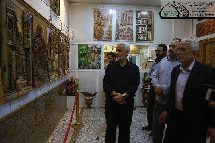 الأمين العام للعتبة الكاظمية المقدسة .. نسعى جاهدين إلى تأسيس متحف ومعرض وورشة عمل خاصة للأعمال الفنية خلال زيارته لوحدة النقش والزخرفة